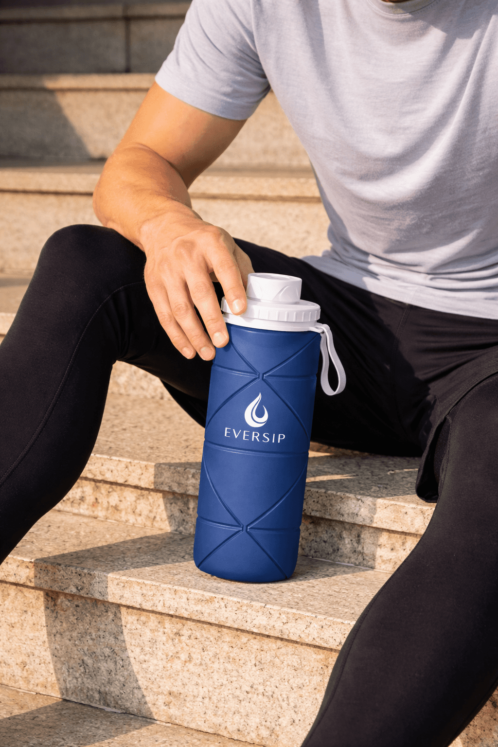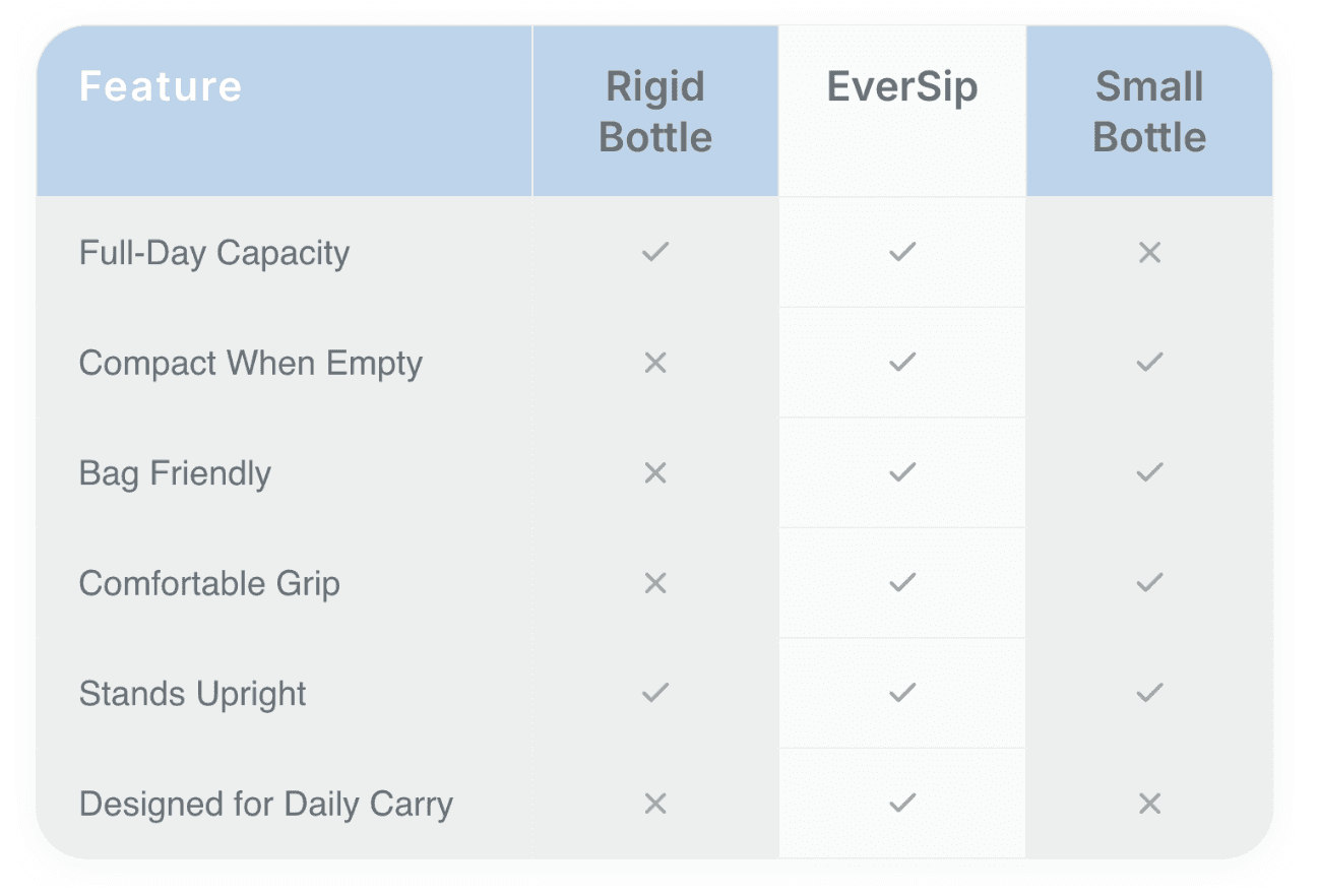 Holds the water you need throughout the day, then folds down to free up space when you’re done.